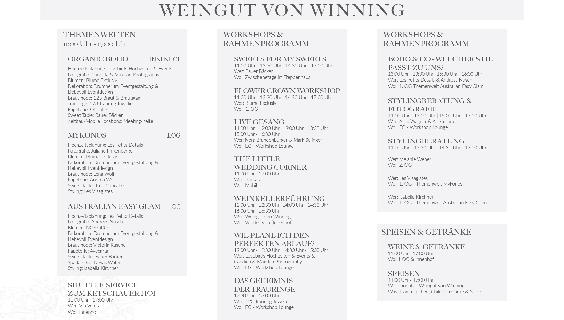 Die Workshops finden in beiden Locations (Weingut von Winning & Ketschauer Hof) statt.